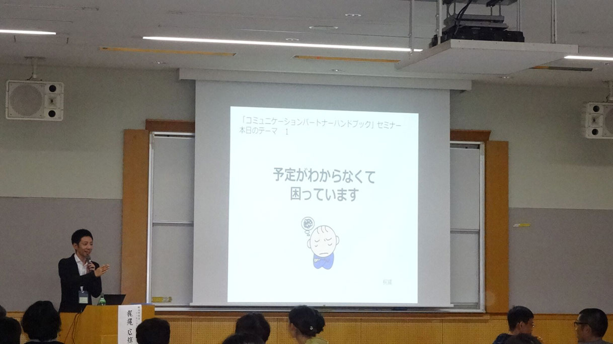 昨年度開催したセミナーでは『コミュニケーションパートナー・ハンドブック(パイロット版)』を用い、講演とグループディスカッションを行いました。