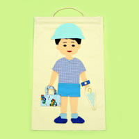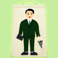 ・帆布に縫い付けられた人体と衣類や持ち物で構成されています。シャツや帽子・腕時計等の衣類や持ち物は,人体に対し面ファスナーで簡単に取り外しできるようになっています。