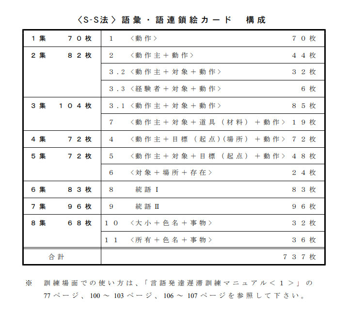 ・「言語発達遅滞訓練マニュアル」に基づき,「語彙・語連鎖